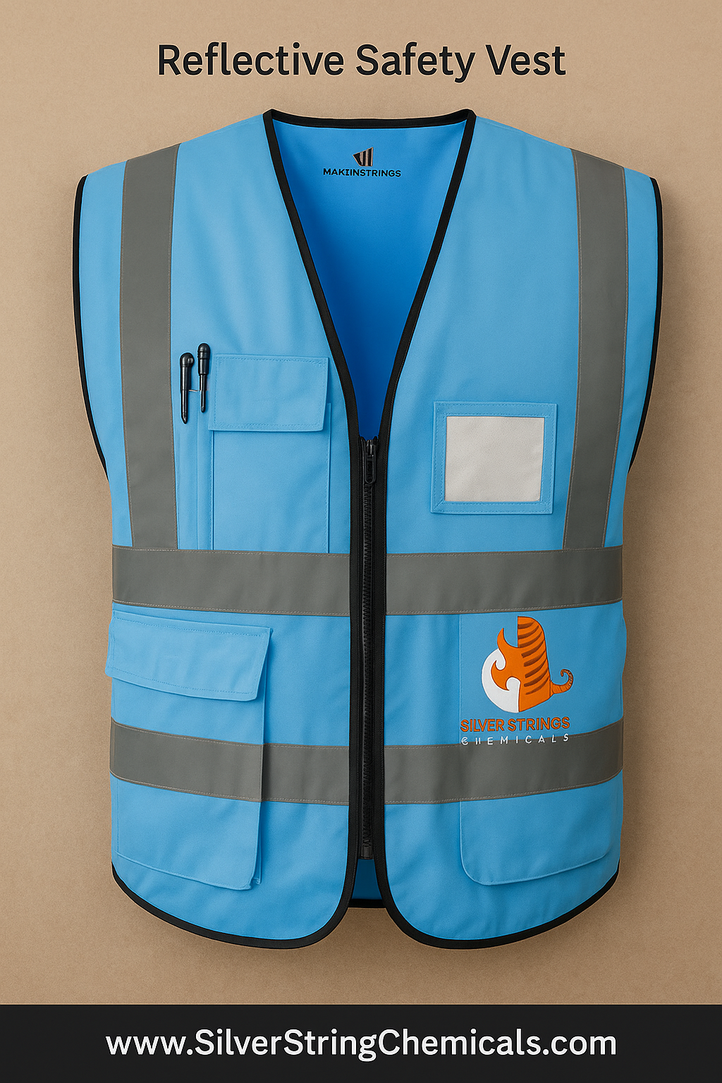 In summary, the High-Visibility Safety Vest from Silver String Chemicals is essential for anyone working in hazardous environments. It offers a perfect combination of durability, comfort, and functionality, ensuring safety in construction, roadwork, or industrial settings.