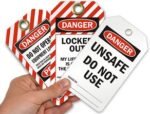 Labeling: Front-facing laminated “DANGER – LOCKED OUT – DO NOT REMOVE” tag with writable surface.
